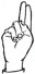 На ћирилици написано МИЊА ГЛУШИЋ састоји се из 10 слова [?]. Исписано ћириличном једноручном азбуком за глувонеме: